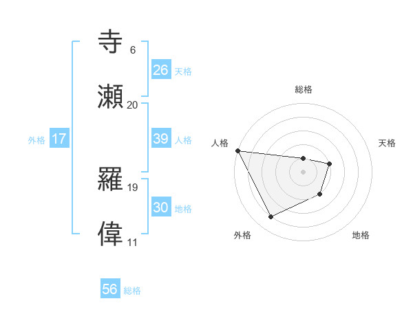 寺瀬 羅偉さんの人格は39画の5点!