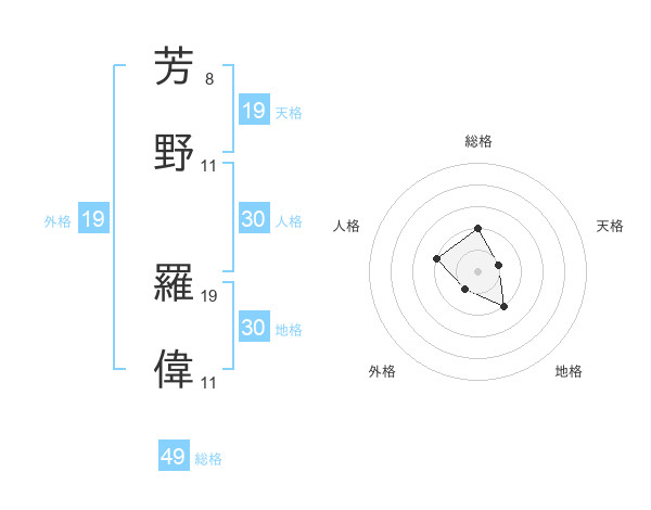 芳野 羅偉さんの総格は49画の2点!