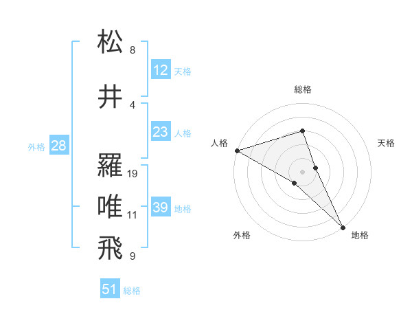 松井 羅唯飛さんを姓名の画数から五運を鑑定