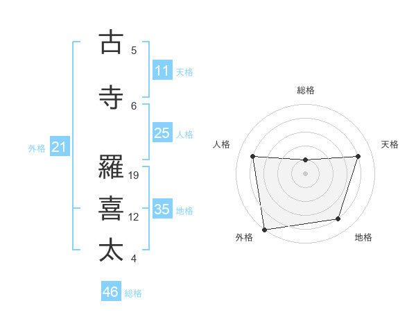 古寺 羅喜太さんの天格は11画の4点!