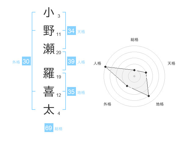 小野瀬 羅喜太さんを姓名の画数から五運を鑑定