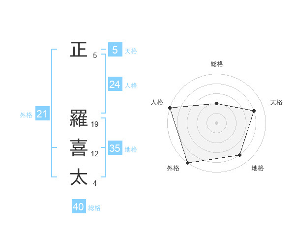 正 羅喜太さんの外格は21画の5点!