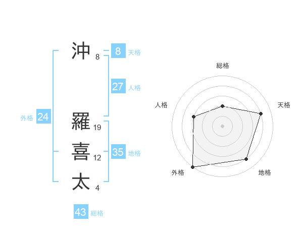 沖 羅喜太さんの天格は8画の4点!