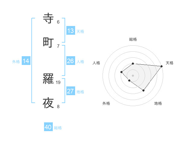 寺町 羅夜さんを姓名の画数から五運を鑑定