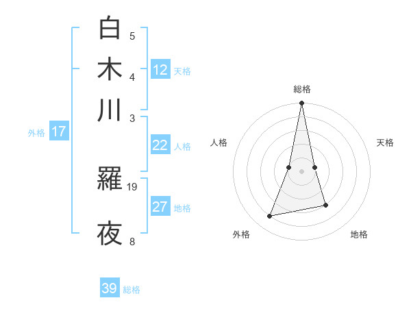 白木川 羅夜さんの総格は39画の5点!