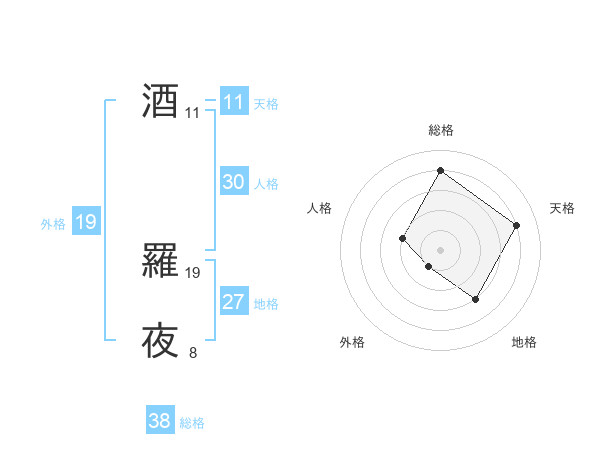 酒 羅夜さんの総格は38画の4点!