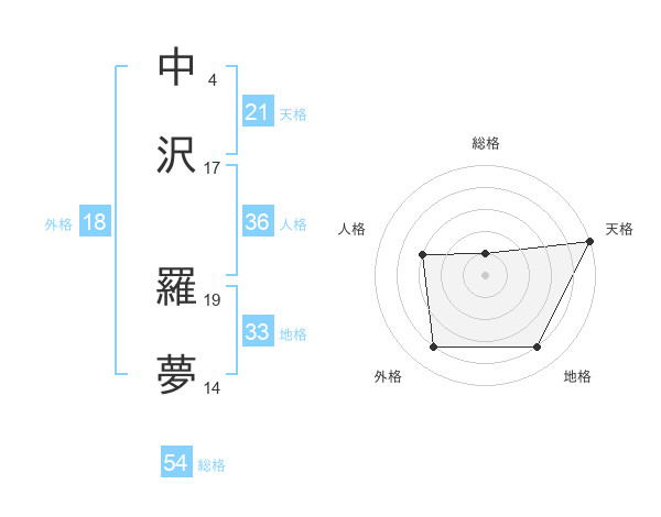 中沢 羅夢さんの天格は21画の5点!