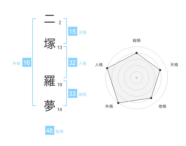 二塚 羅夢さんの総格は48画の4点!