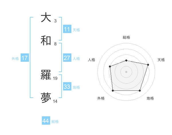 大和 羅夢さんを姓名の画数から五運を鑑定