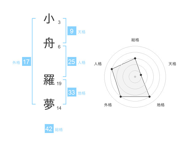 小舟 羅夢さんの総格は42画の3点!
