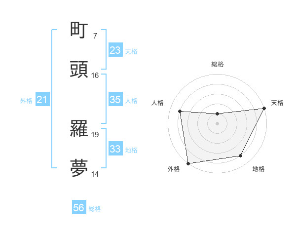 町頭 羅夢さんを姓名の画数から五運を鑑定