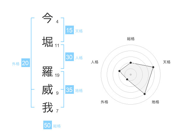 今堀 羅威我さんを姓名の画数から五運を鑑定