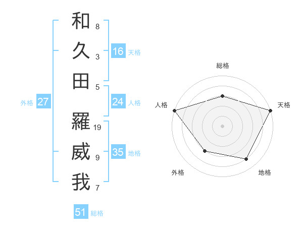和久田 羅威我さんを姓名の画数から五運を鑑定