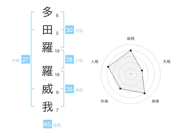 多田羅 羅威我さんを姓名の画数から五運を鑑定