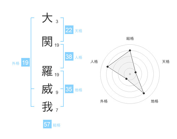 大関 羅威我さんを姓名の画数から五運を鑑定
