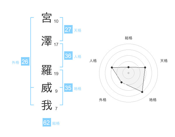 宮澤 羅威我さんの外格は26画の2点