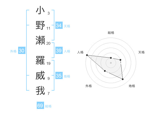 小野瀬 羅威我さんを姓名の画数から五運を鑑定