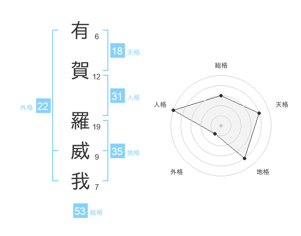 有賀 羅威我さんの総格は53画の3点!