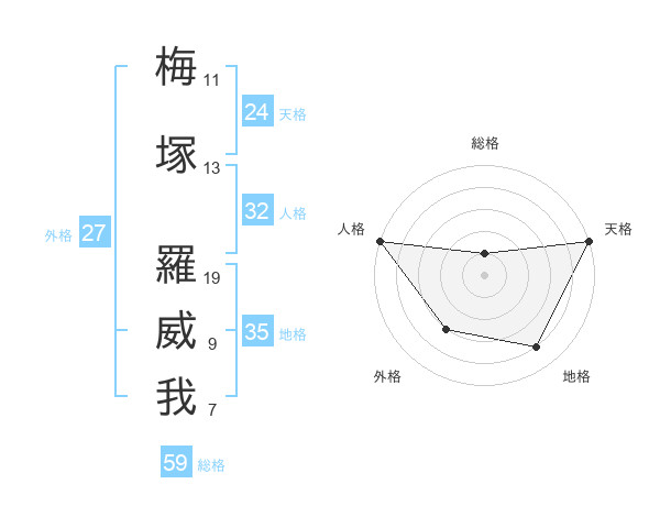 梅塚 羅威我さんを姓名の画数から五運を鑑定