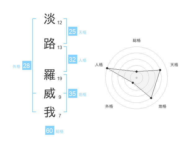 淡路 羅威我さんを姓名の画数から五運を鑑定