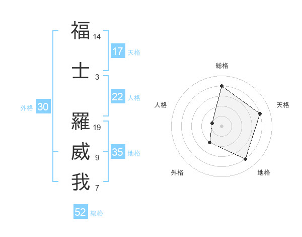 福士 羅威我さんを姓名の画数から五運を鑑定