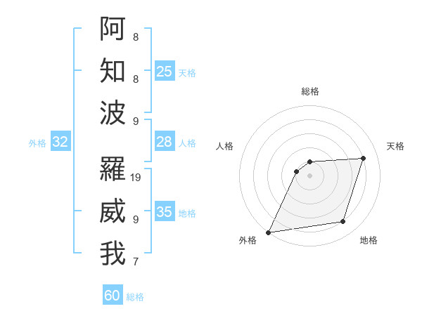 阿知波 羅威我さんの天格は25画の4点!