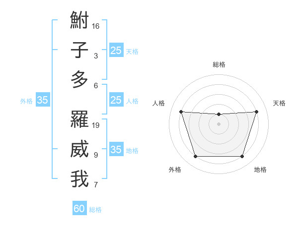 鮒子多 羅威我さんを姓名の画数から五運を鑑定