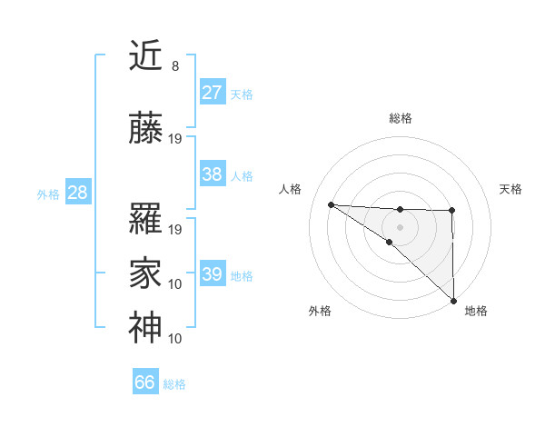 近藤 羅家神さんの総格は66画の1点!