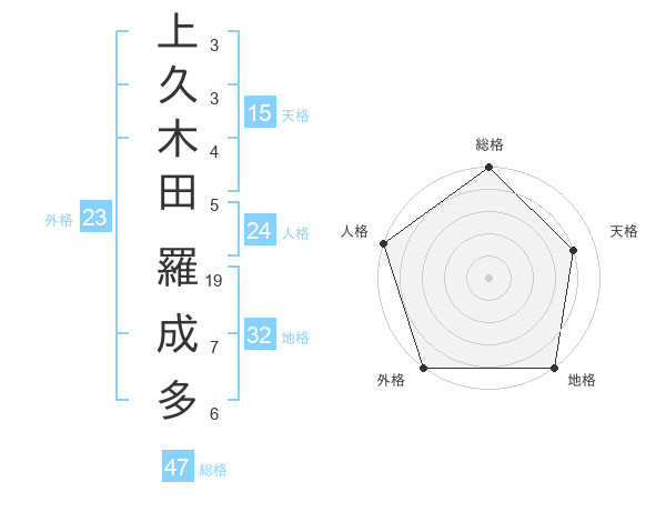 上久木田 羅成多さんを姓名の画数から五運を鑑定
