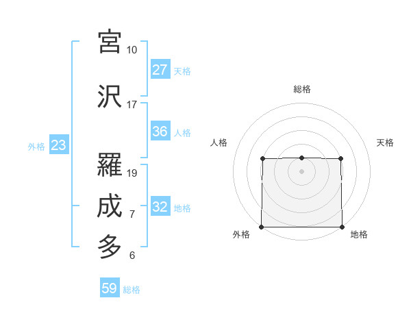 宮沢 羅成多さんを姓名の画数から五運を鑑定