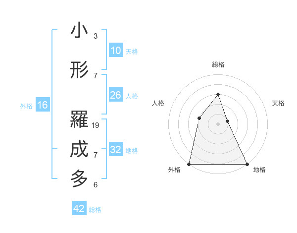小形 羅成多さんを姓名の画数から五運を鑑定