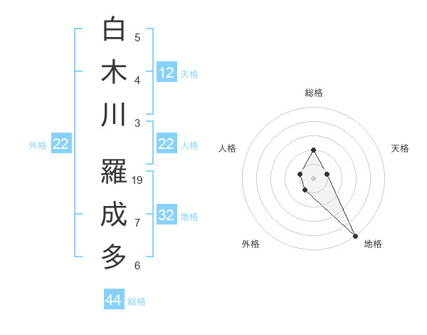 白木川 羅成多さんの総格は44画の2点!