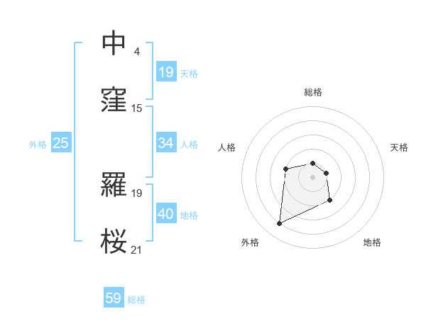 中窪 羅桜さんを姓名の画数から五運を鑑定