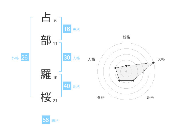 占部 羅桜さんを姓名の画数から五運を鑑定