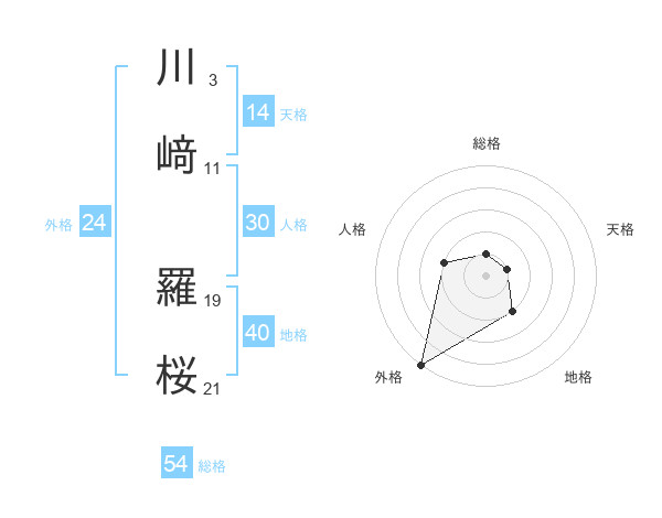 川﨑 羅桜さんを姓名の画数から五運を鑑定