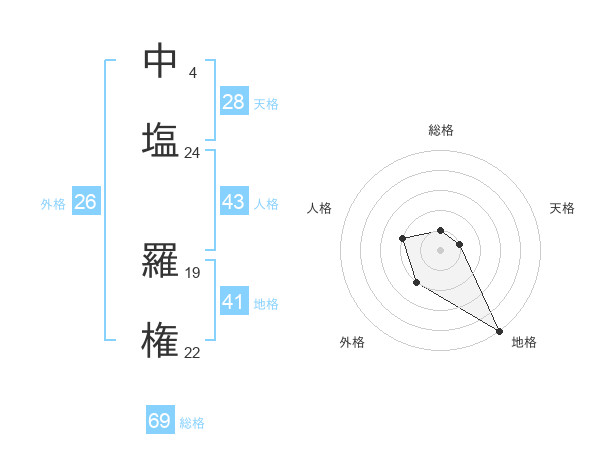 中塩 羅権さんを姓名の画数から五運を鑑定