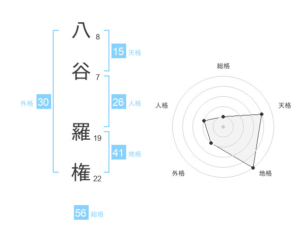 八谷 羅権さんを姓名の画数から五運を鑑定