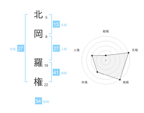 北岡 羅権さんを姓名の画数から五運を鑑定