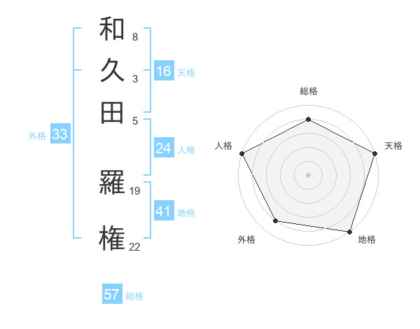 和久田 羅権さんの総格は57画の4点!
