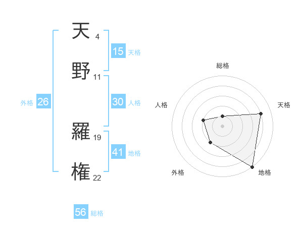 天野 羅権さんの総格は56画の1点!