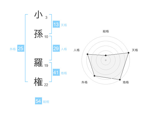 小孫 羅権さんの総格は54画の1点!
