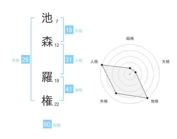 池森 羅権さんの総格は60画の1点!