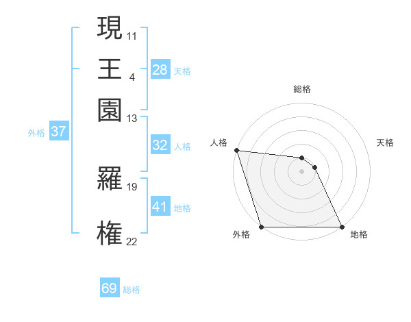 現王園 羅権さんの外格は37画の5点!