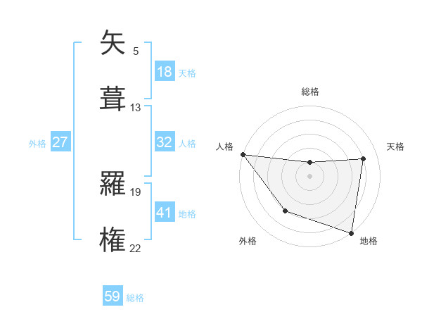 矢葺 羅権さんの総格は59画の1点!