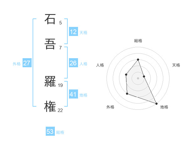 石吾 羅権さんの総格は53画の3点!