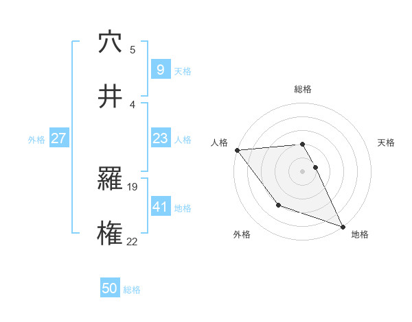 穴井 羅権さんを姓名の画数から五運を鑑定