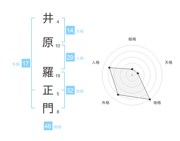 井原 羅正門さんを姓名の画数から五運を鑑定