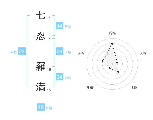 七忍 羅満さんの総格は48画の4点!