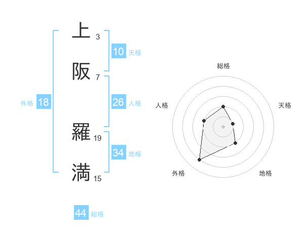 上阪 羅満さんを姓名の画数から五運を鑑定