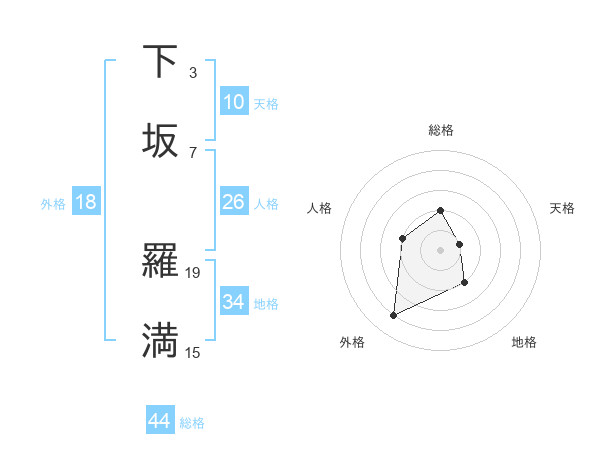 下坂 羅満さんの総格は44画の2点!
